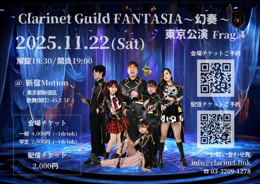 チケット:一般4,000円/学生2,000円(どちらも+1drink)